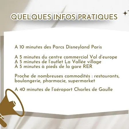 Disney Suite Moderne Chessy Parking Gratuit dairesinde tam donanımlı mutfağın yanı sıra balkon, kanepe, kahve/çay makinesi içeren odalar bulunmaktadır. Vallée Village Alışveriş Merkezi, tesisten 1 km uzaklıkta ve Disneyland Park 2 km mesafede bulunmaktadır.
